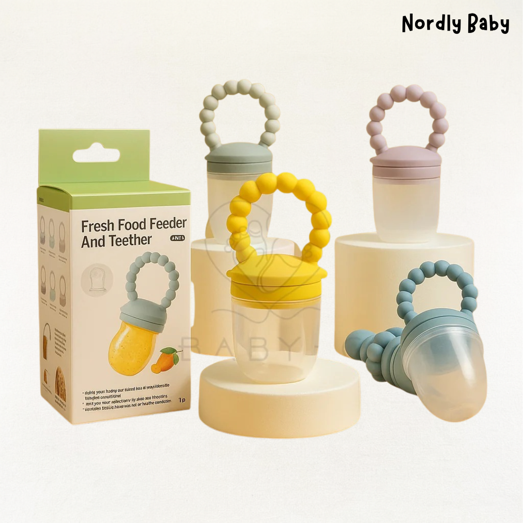 The first bites are something very special. With our FruityFeeder, your baby can explore new flavors in a safe, playful, and worry-free way. Fill the pacifier with fruit, vegetables, or soft food and let your child play their way to their first taste experiences – without any risk of choking.